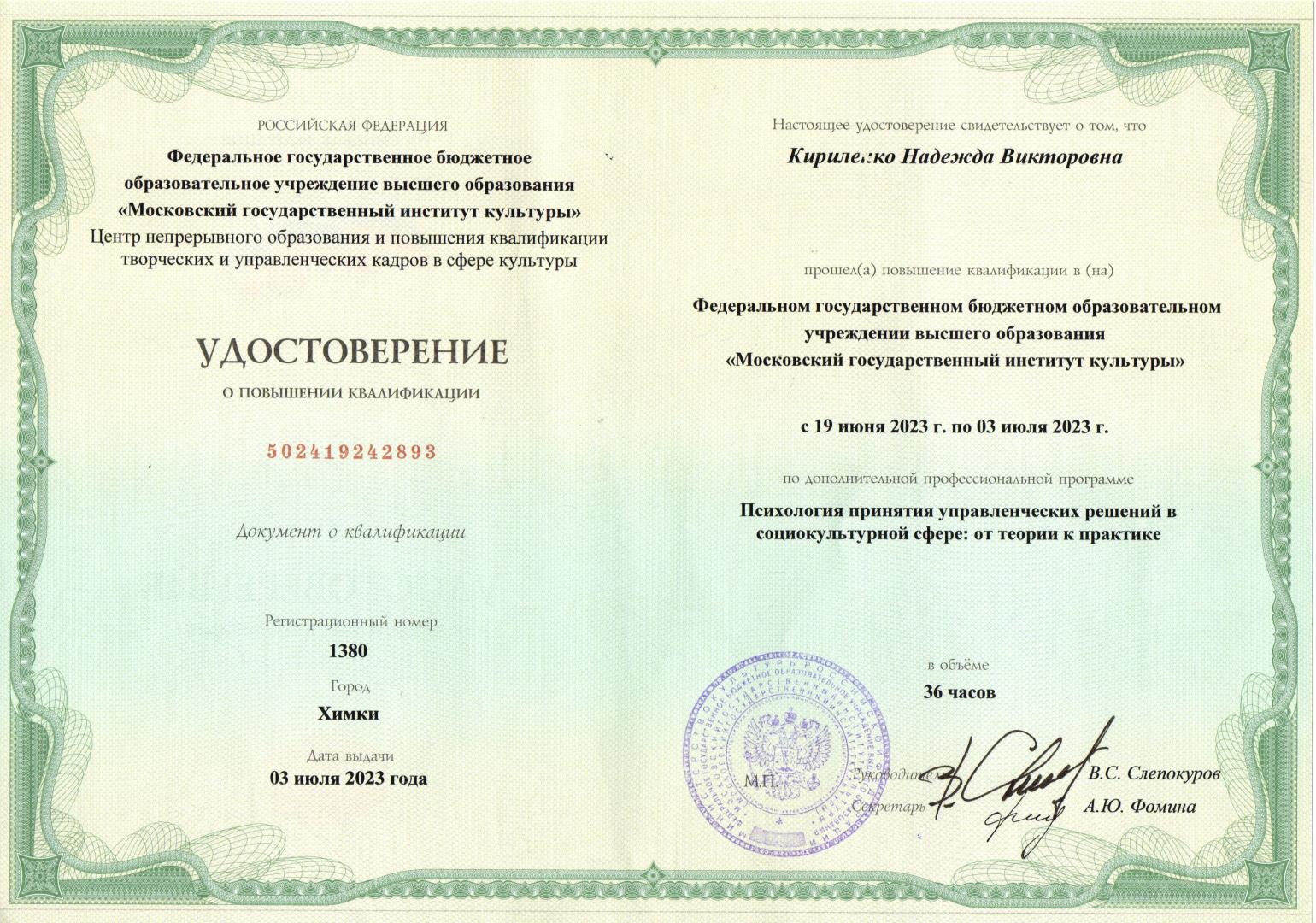 Кириленко Надежда Викторовна