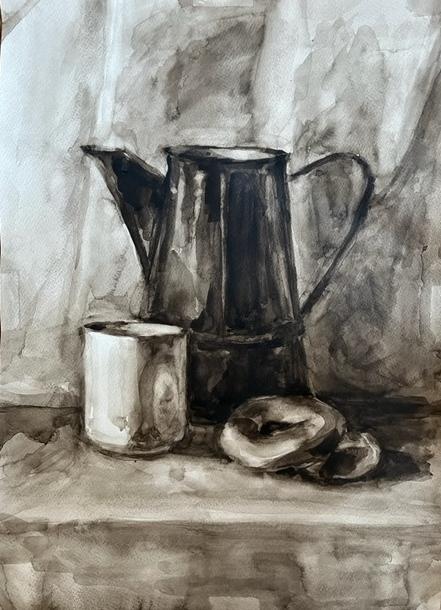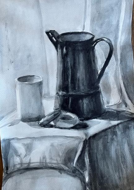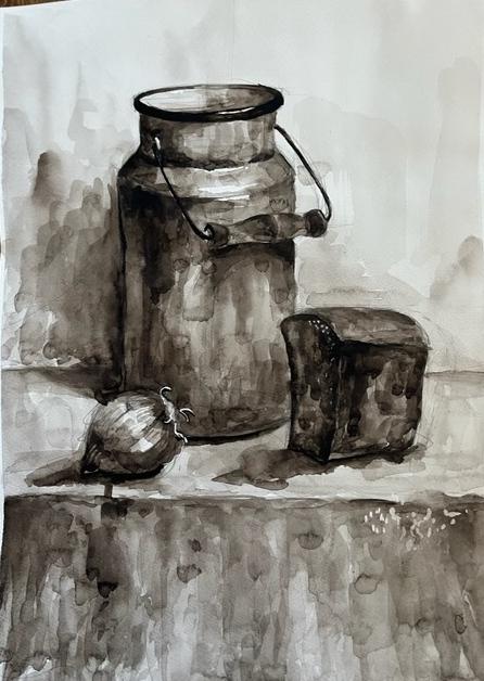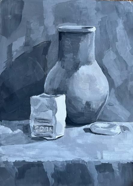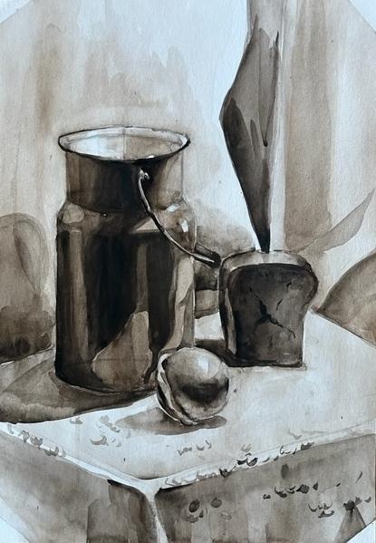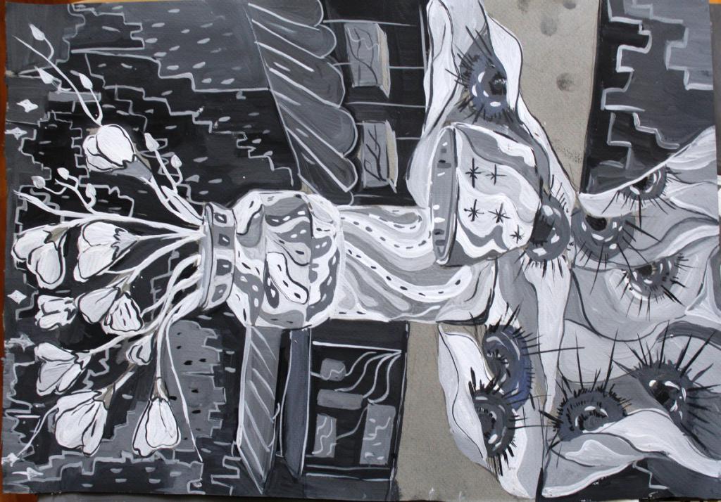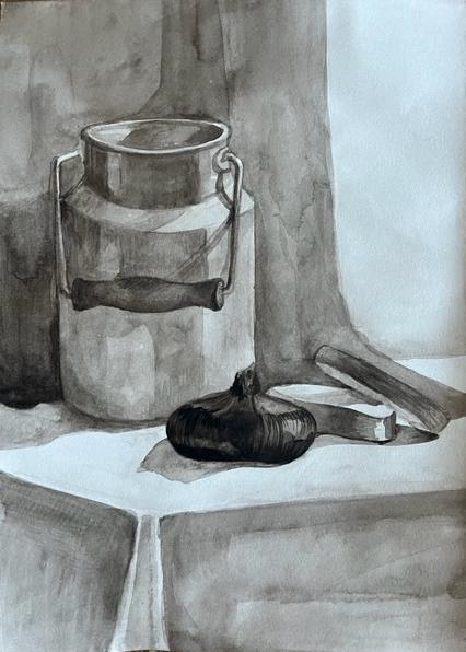 Диплом 1 степени - Иванова Валерия, за работу «Натюрморт, гризайль» (акварель, гуашь), обучающаяся МБУ ДО "Евпаторийская детская школа искусств", преподаватель: Рыхальская Оксана Владимировна