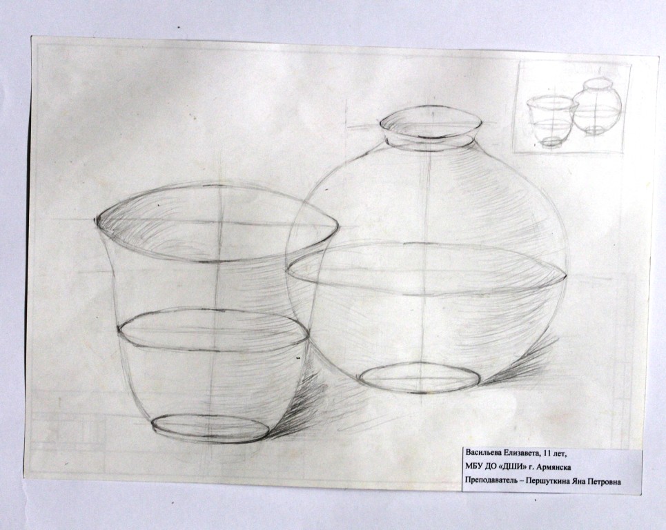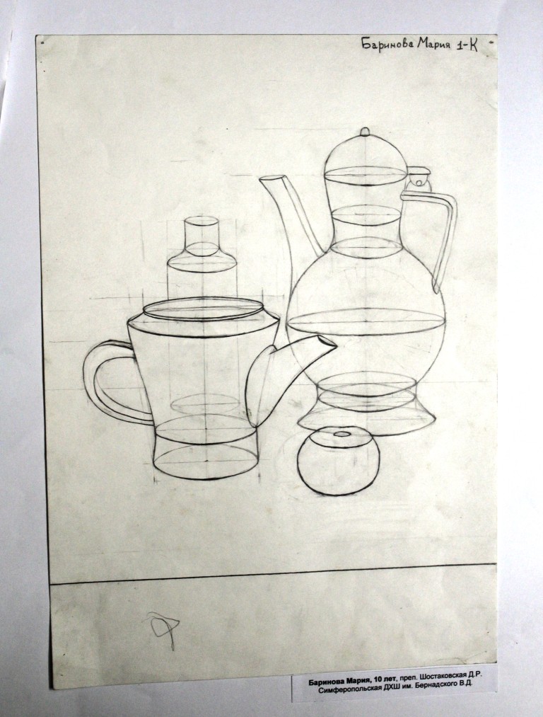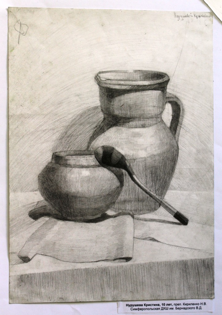 Диплом 3 степени – Климова Арина, за работу «Академический натюрморт», обучающаяся МБУДО «Евпаторийская ДХШ им. Ю.В. Волкова», преподаватель: Рубан Сергей Иванович