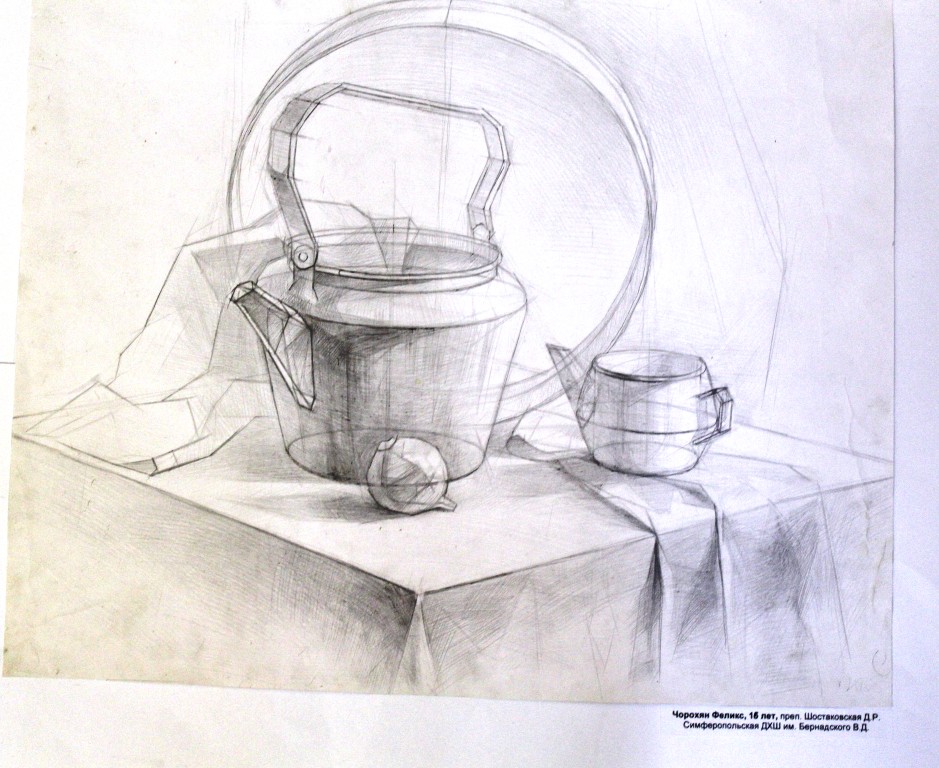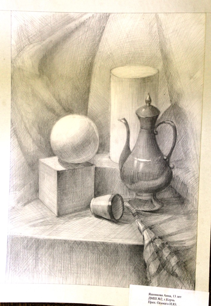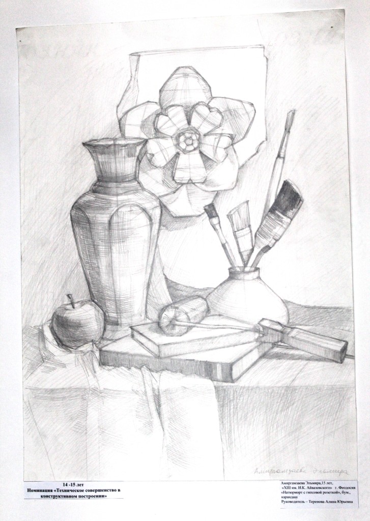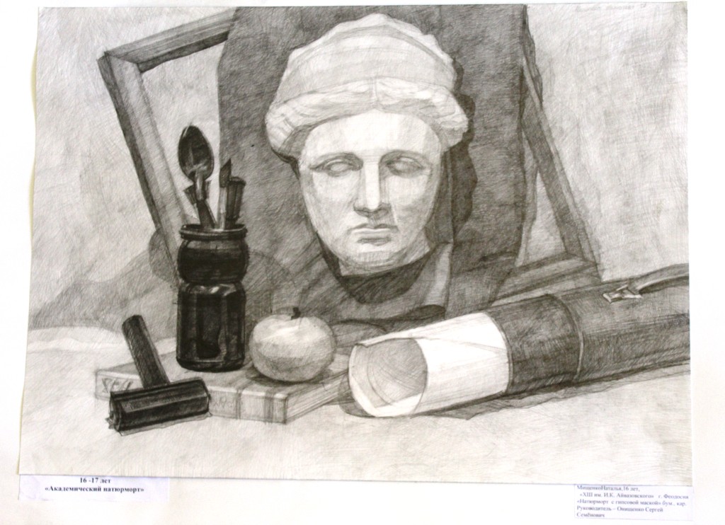 Диплом 1 степени – Тельканов Александр, за работу «Академический натюрморт», обучающийся МБУДО «ДХШ им.И. К. Айвазовского» г.Феодосия, преподаватель: Остапенко Юрий Викторович.