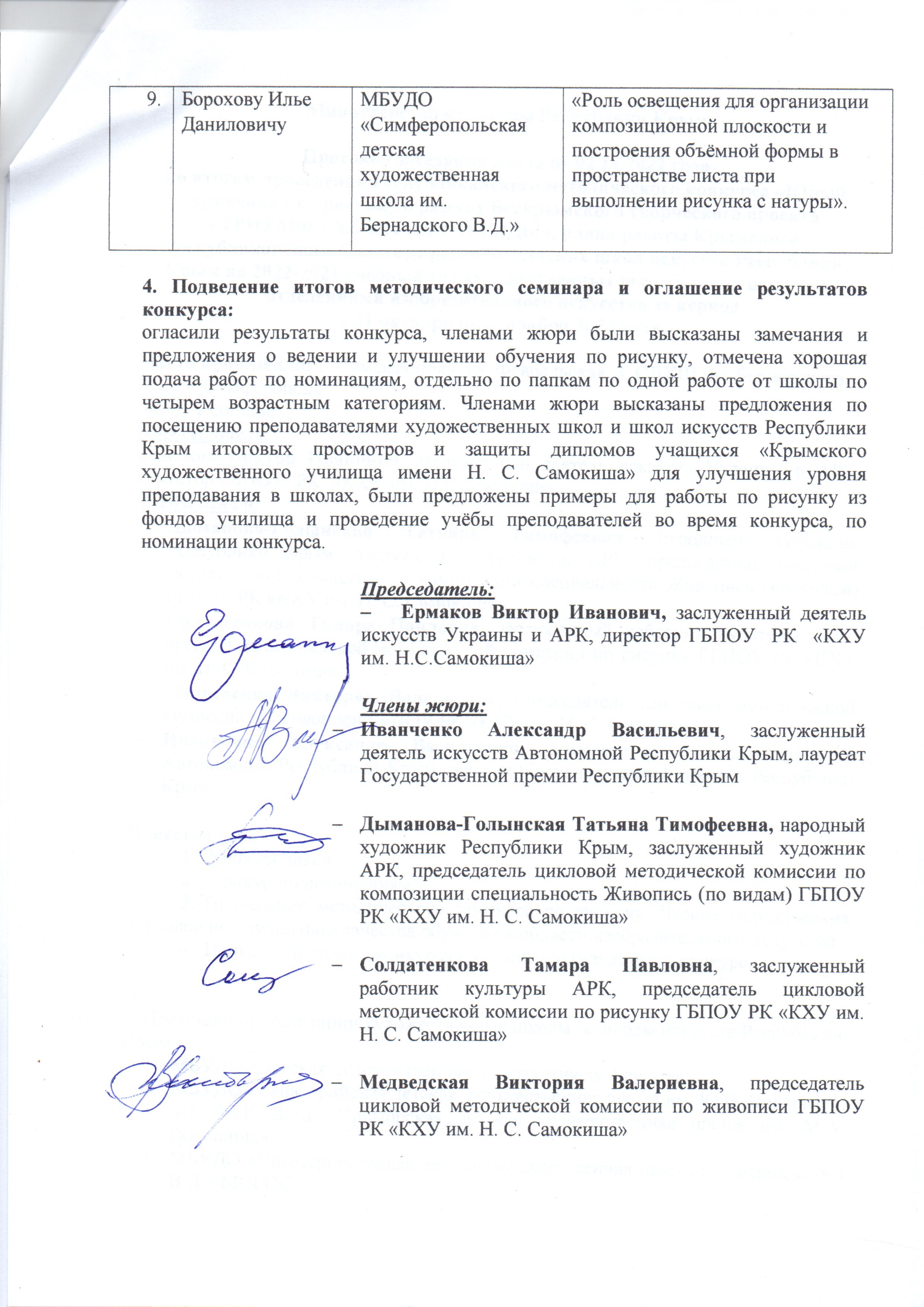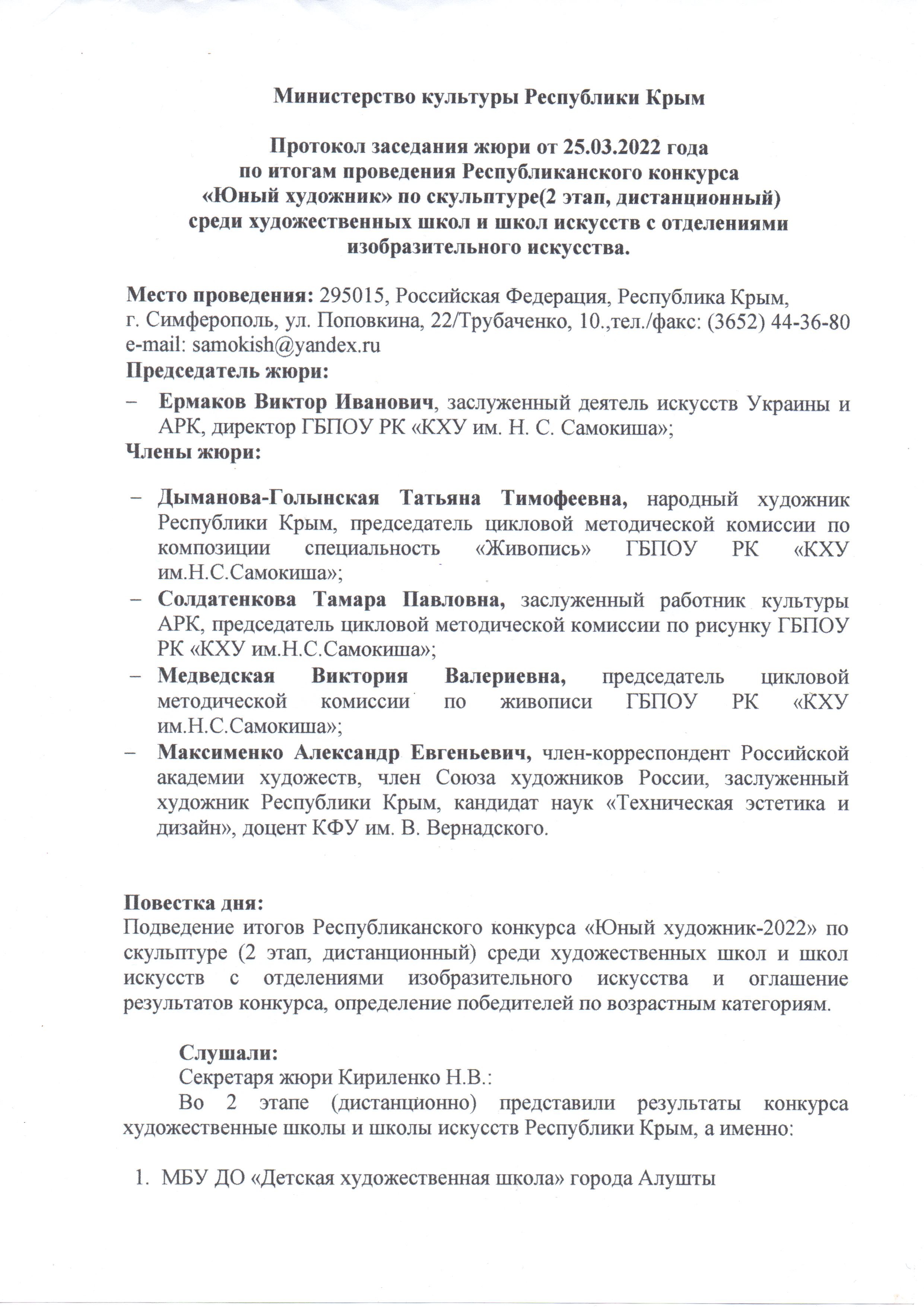 5.1. Для оценки работы участников конкурса формируется жюри, в состав которого могут приглашаться члены Союза художников России, известные искусствоведы, преподаватели ГБПОУ РК «Крымское художественное училище имени Н.С. Самокиша».