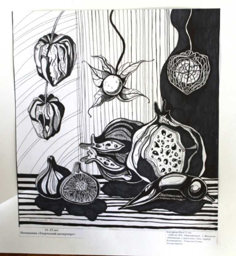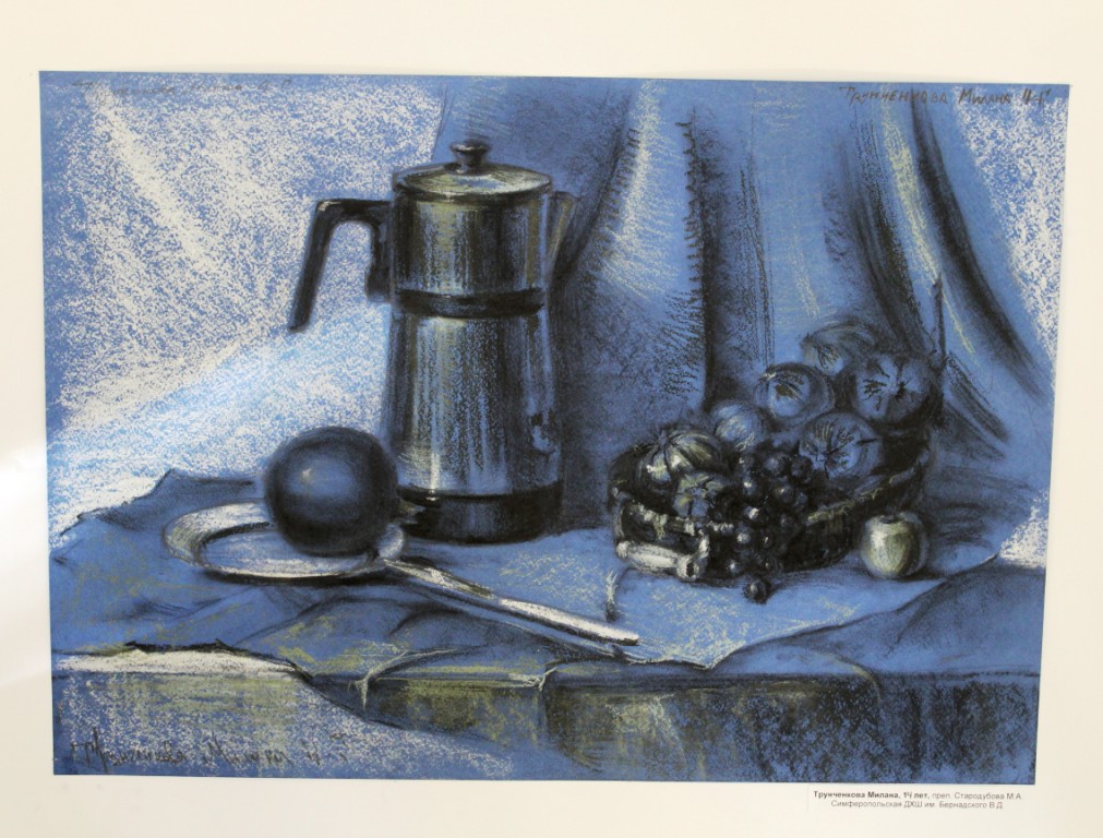 Диплом 1 степени - Мадонова Юлиана,за работу «Академический натюрморт», обучающаяся МБУДО «Приморская ДХШ им. М.А. Волошина», преподаватель: Лаврушина Юлия Анатольевна