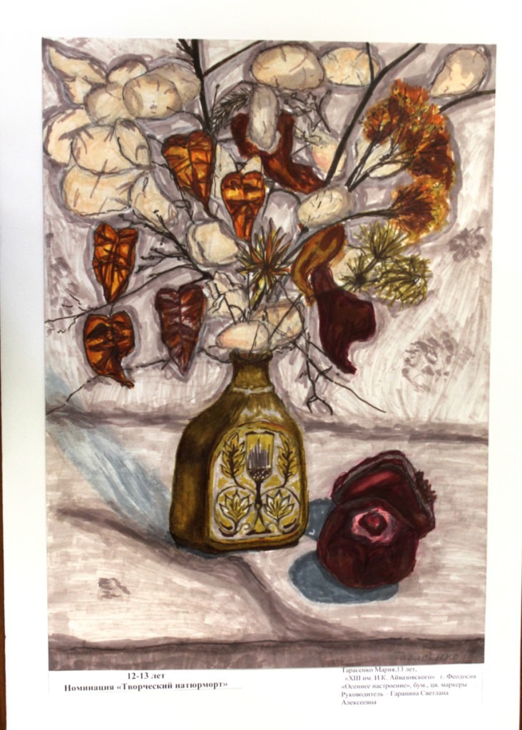 Диплом 3 степени – Сумцова Марина, за работу «Тематический натюрморт», обучающаяся МБУДО ДХШ г. Алушты, преподаватель: Непочатова Ольга Анатольевна